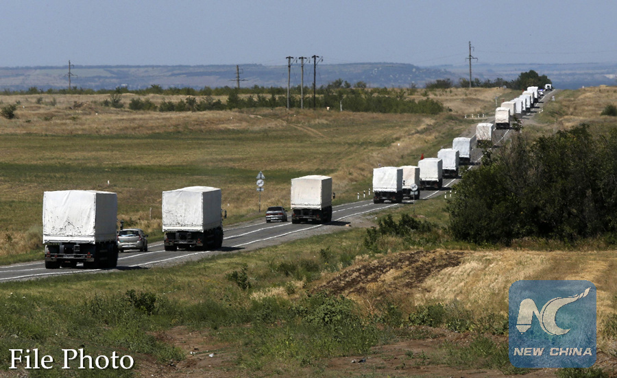 A Russian convoy of trucks carrying humanitarian aid for Ukraine drives along a road in the direction of the border with Ukraine, after leaving Kamensk-Shakhtinsky, Rostov Region, August 17, 2014. (REUTERS PHOTO)