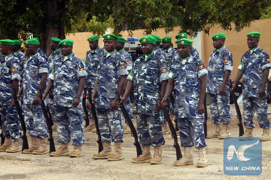 Police Units of the African Union Mission in Somalia (AMISOM) stand in position after concluding training in the Somali capital Mogadishu Thursday May 30, 2013. (Xinhua/Faisal Isse)