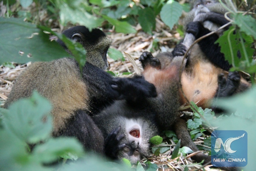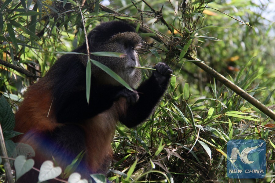 VOLCANOES NATIONAL PARK, Rwanda, Dec. 31 (Xinhua) -- Golden monkey is listed as an endangered species by the International Union for Conservation of Nature (IUCN).