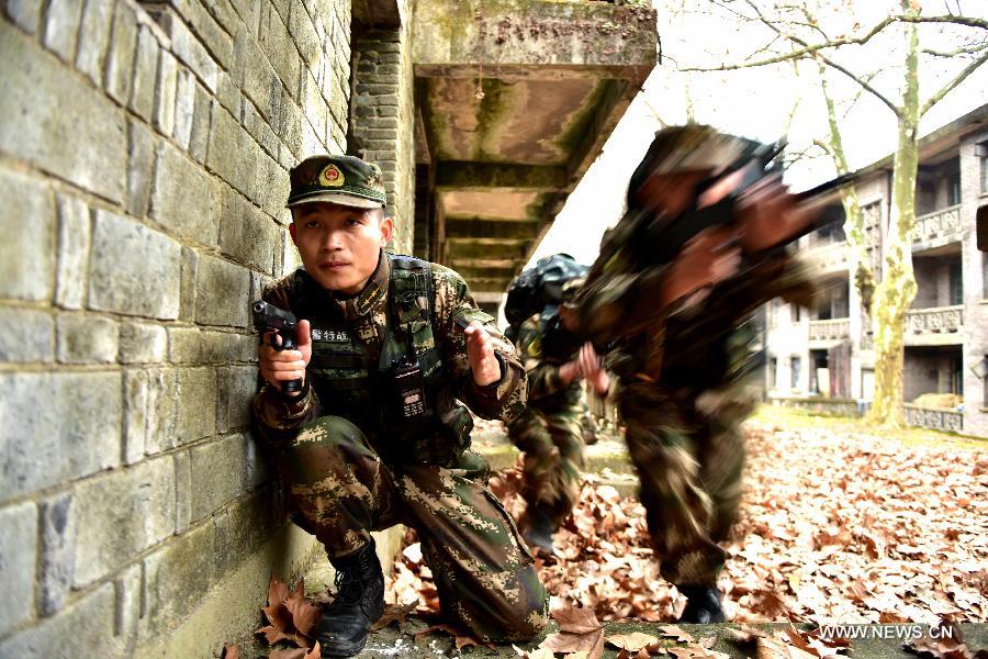 An armed police unit in E China's Jiangxi has a training on Jan. 3, 2018. (Xinhua photo)