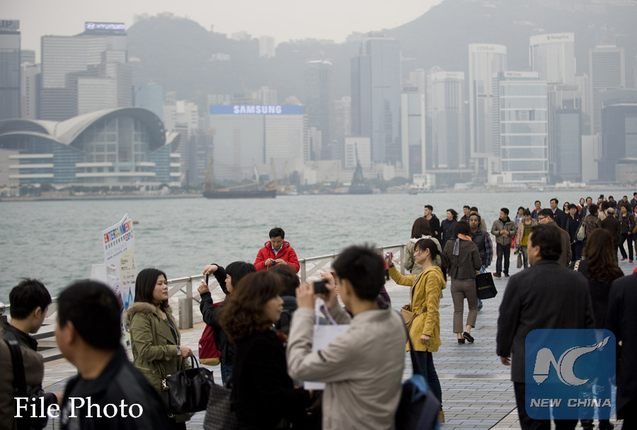 Tourists pose for photos at the Avenue of Stars in Hong Kong, south China, March 14, 2012. (Xinhua/Liu Sui Wai)
