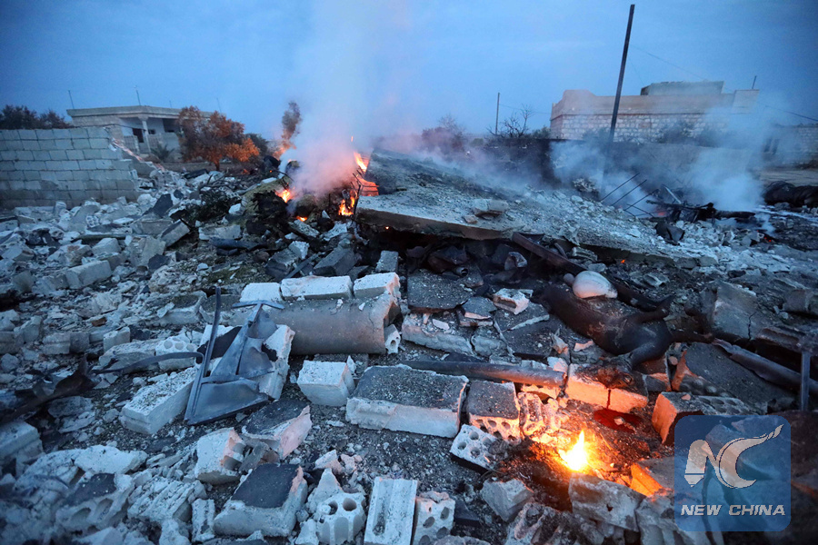 MOSCOW, Feb. 4 (Xinhua) -- Massive Russian air strikes have killed at least 30 militants in northwest Syria, where a Russian fighter jet was shot down, Russia's Defense Ministry said in a statement Saturday.