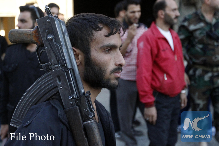 A Free Syrian Army fighter holds his weapon beside fellow fighters in Aleppo's Sheikh Saeed neighborhood, September 28, 2013. (REUTERS PHOTO)