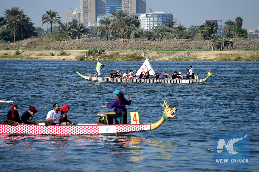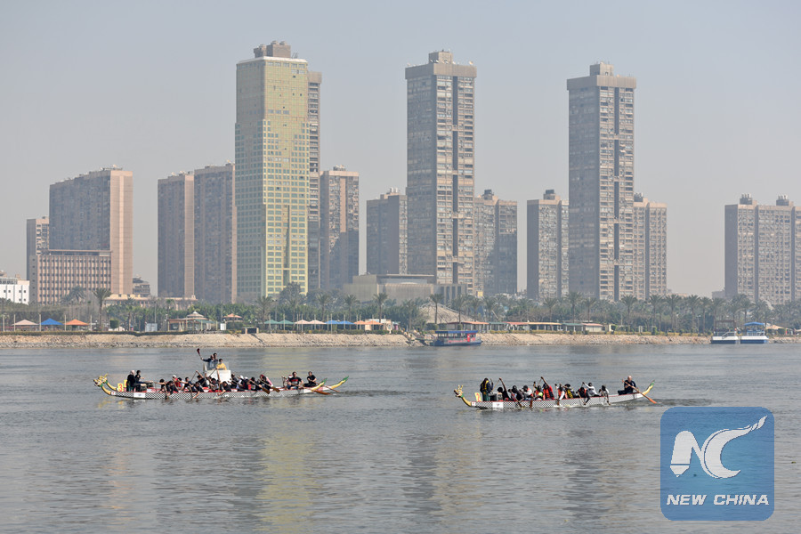 CAIRO, Feb. 24 (Xinhua) -- As a part of Sino-Egyptian celebrations of Chinese New Year, dozens of Egyptians and Chinese gathered on Saturday at Royal Mohamed Ali Club in Giza province, near Cairo, to watch dragon boats racing on the Nile River.