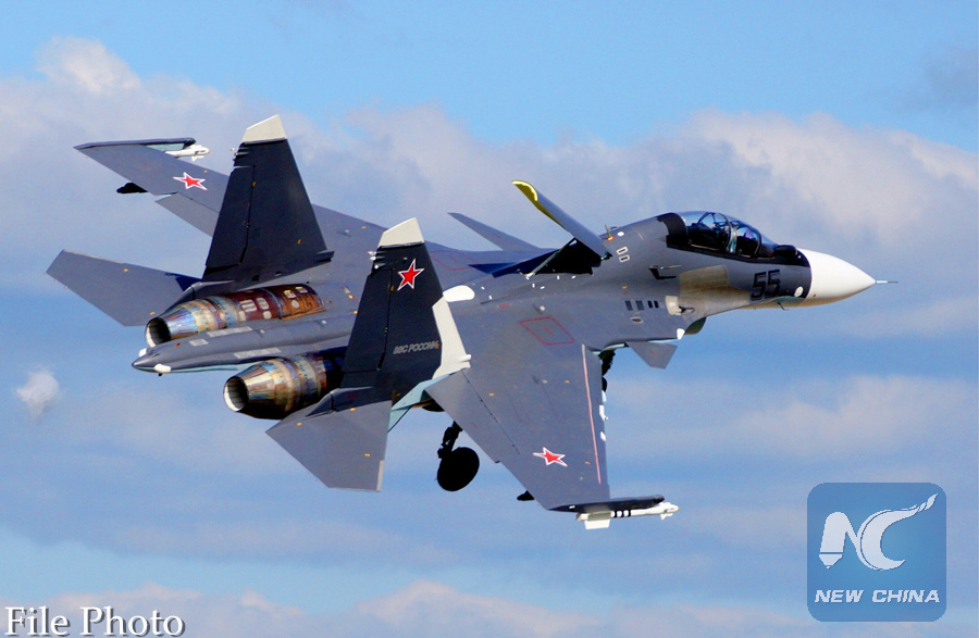 A Russian SU-35 performs during the MAKS-2013 international aviation and space show in the city of Zhukovsky near Moscow, Russia, Aug. 27, 2013. (Xinhua/Shen Jinke)