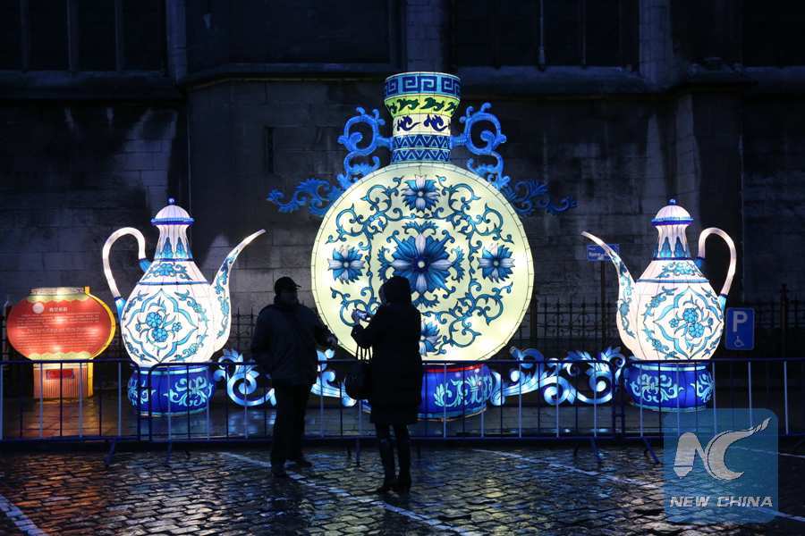 Photo taken on March 9, 2018 shows the Chinese lanterns exhibition in Dinant in southern Belgium. (Xinhua/Wang Xiaojun)