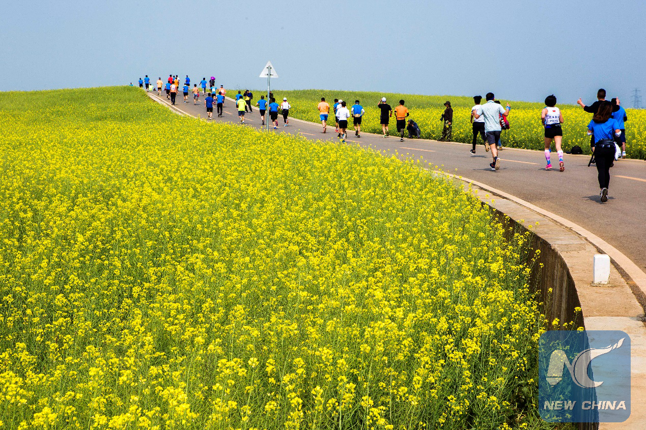 Luoping, located in southwestern China's Yunnan province, is known as the Eastern Garden for its sea of splendid rapeseed flowers that blossom in the spring. Music was played at 5 posts along the route, allowing runners to rock out from beginning to end.