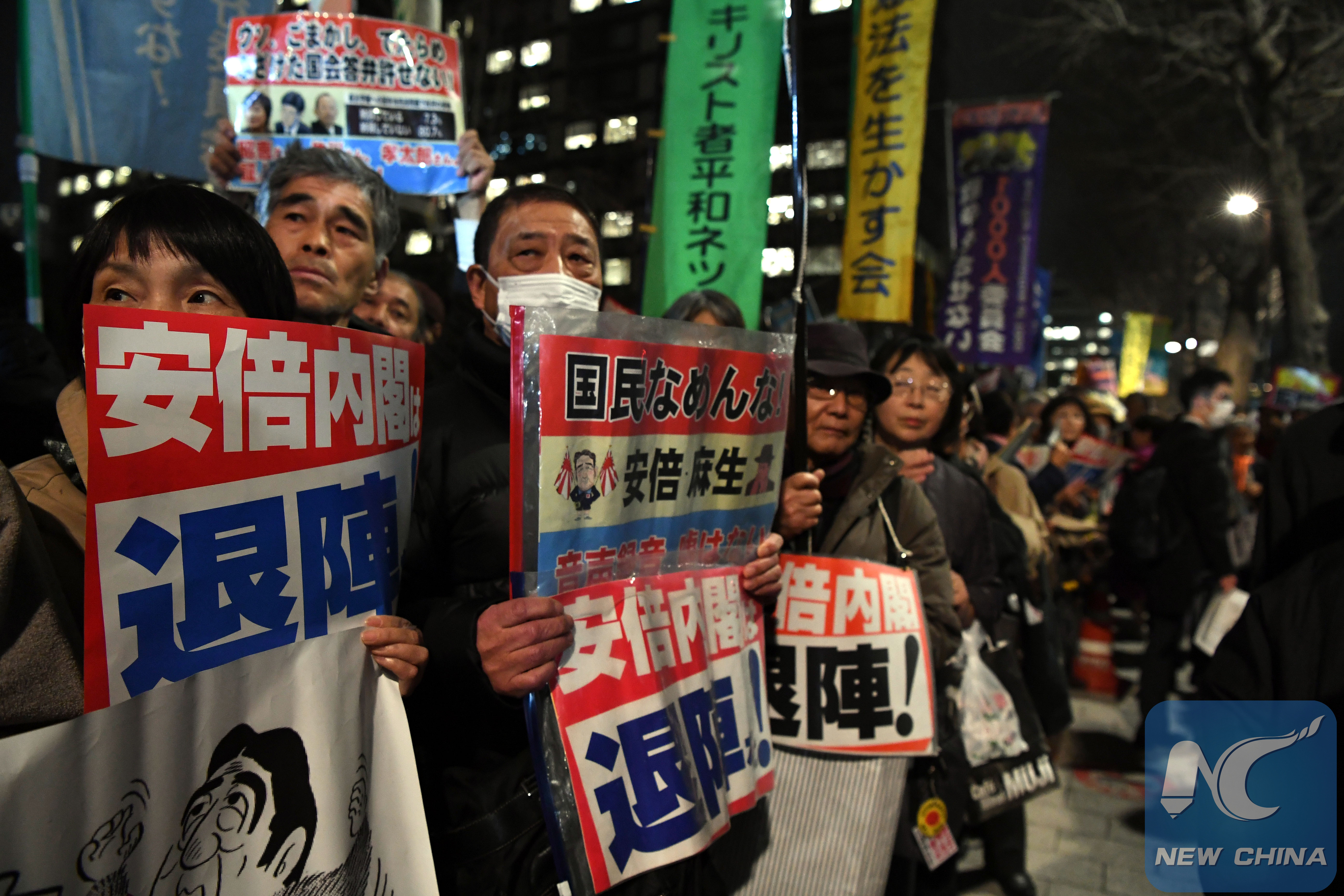TOKYO, March 20 (Xinhua) -- Japanese Prime Minister Shinzo Abe has been under fire amid a deepening cronyism and document-tampering scandal, which has drastically brought down his cabinet's approval ratings, while people staged protests across Japan calling for the cabinet's resignation.