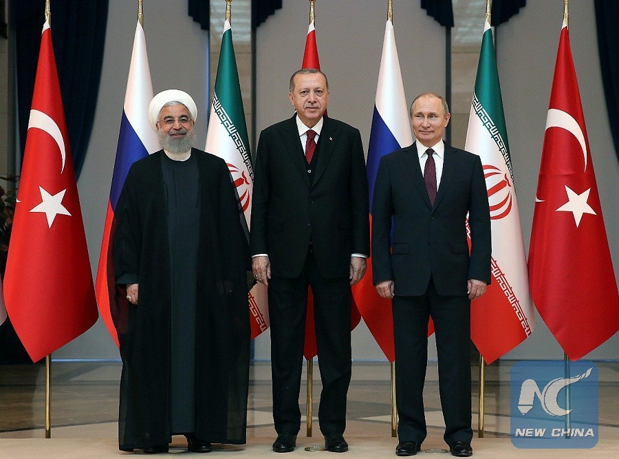Turkey, Russia and Iran pledge Wednesday to speed up efforts to ensure calm on the ground and fight against separatism in Syria. (Xinhua Photo)