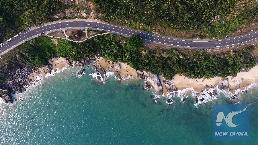 Aerial photo taken on March 25, 2018 shows part of the 35-kilometer seaside sightseeing highway in Wanning, south China's Hainan Province. (Xinhua/Guo Cheng)