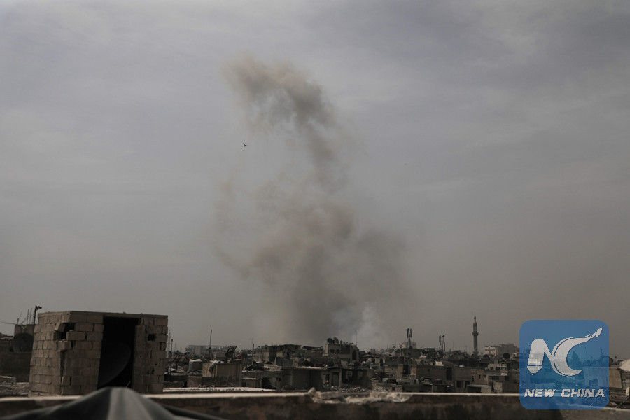 (File photo)Smoke billows following Syrian government air strikes on the Eastern Ghouta rebel-held enclave of Douma, on the outskirts of the capital Damascus on March 20, 2018. (AFP photo)