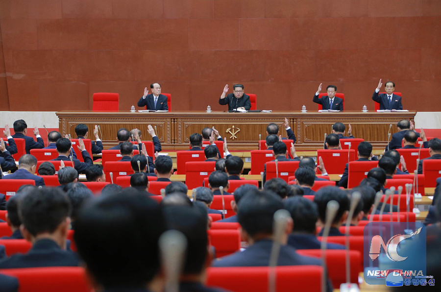 The photo provided by the Korean Central News Agency (KCNA) shows a view of the Third Plenary Meeting of the Seventh Central Committee of the ruling Workers' Party of Korea in Pyongyang, the Democratic People's Republic of Korea (DPRK), on April 20, 2018. (Xinhua/KCNA)