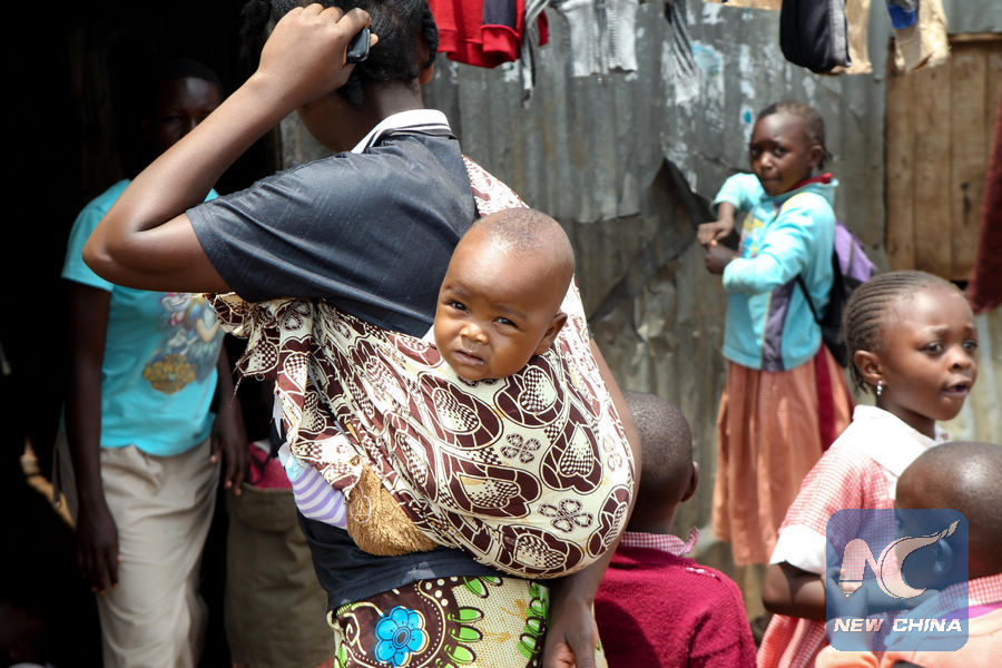 File photo of a women carrying her boy on the road of Mathare slum in Addis Ababa, capital of Ethiopia. (Xinhua)