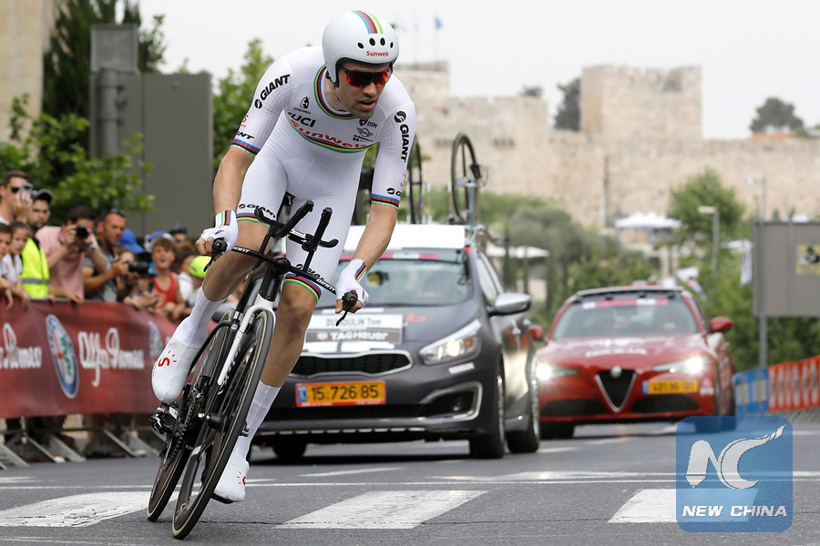 Netherlands' rider of team Sunweb Tom Dumoulin rides during the 1st stage of the 101st Giro d'Italia, Tour of Italy, on May 4, 2018, a 9,7 kilometers individual time-trial in Jerusalem. (AFP photo)