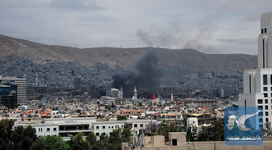 Smoke rises from the heart market in Damascus, Syria on May 9, 2018. (SANA/Handout via REUTERS)