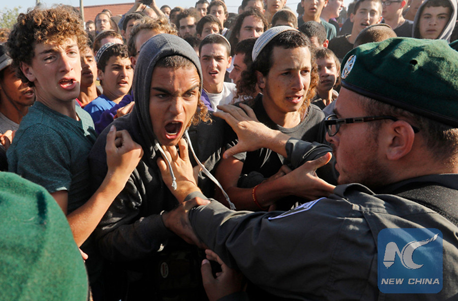 JERUSALEM, June 17 (Xinhua) -- Israeli pro-settlement activists attacked and injured Israeli police officers during a court-ordered eviction of an illegal outpost in the occupied West Bank on Sunday, the police said.