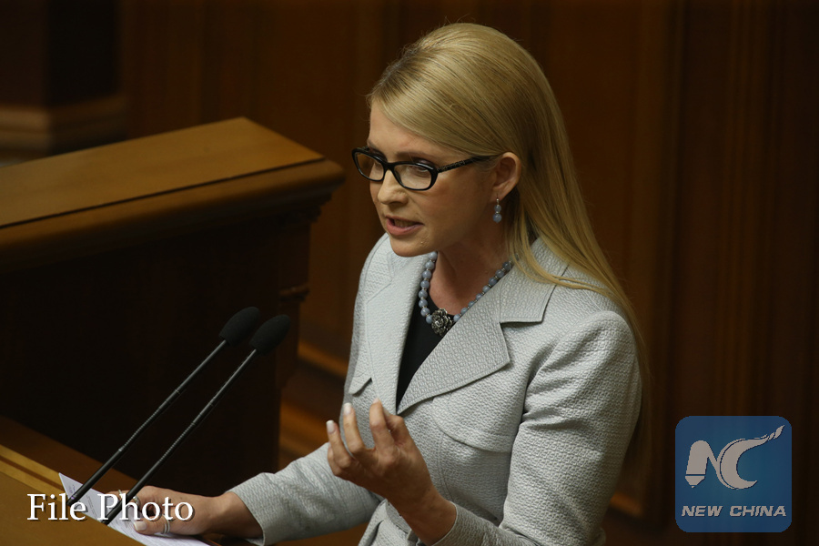 Former Ukrainian Prime Minister and leader of the Fatherland party Yulia Tymoshenko speaks at a parliament session in Kiev, Ukraine on April 14, 2016. (Xinhua)
