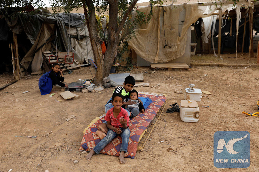 Palestinian Bedouin children play on May 30 in the Khan al-Ahmar village, a Bedouin village which is located between the West Bank city of Jericho and Jerusalem and is under an Israeli demolition order. (AFP Photo)