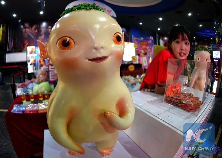 Photo taken on July 26, 2015 shows Huba, a monster in the Chinese film "Monster Hunt", at a cinema in Shenyang, capital of northeast China's Liaoning Province.(Xinhua/Li Gang)