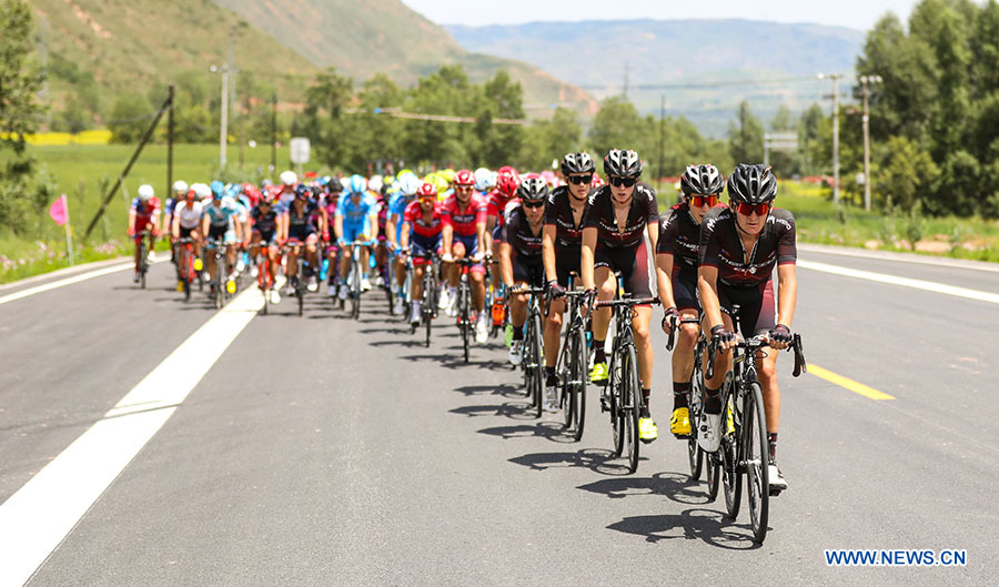 Cyclists compete in the first stage of the Tour of Qinghai Lake in northwest China's Qinghai Province, on July 22, 2018. (Xinhuanet Photo by Jia Haiyuan)