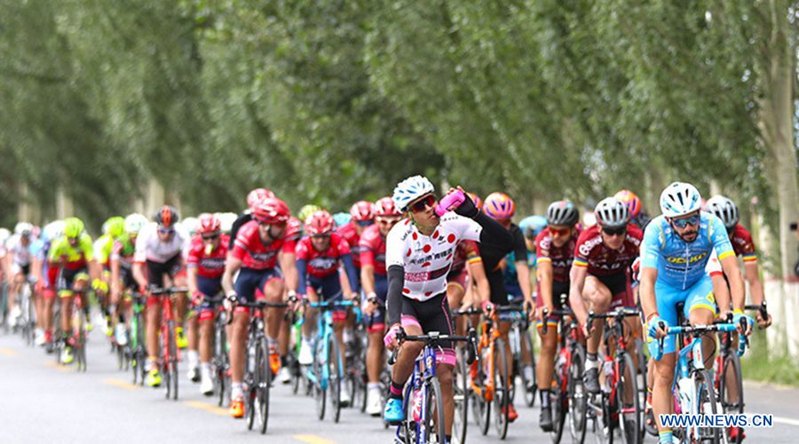 Cyclists compete in the eighth stage of the Tour of Qinghai Lake in northwest China's Gansu Province on July 29, 2018. (Xinhuanet Photo by Jia Haiyuan)