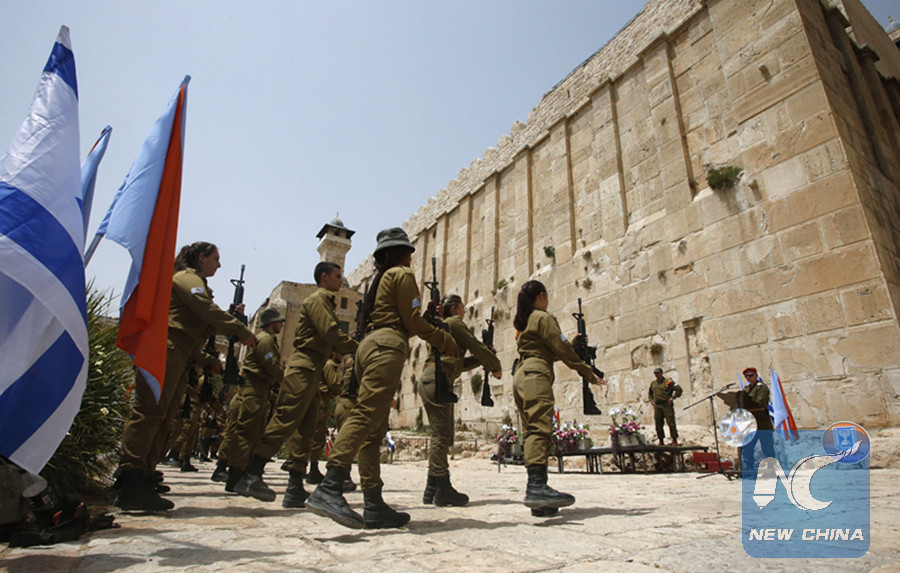 File photo: Israeli soldiers stand outside the Tomb of the Patriarchs, also known as the Ibrahimi Mosque, in the divided Palestinian city of Hebron in the Israeli occupied West Bank. (AFP photo)