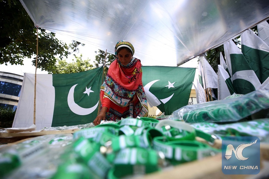 ISLAMABAD, Aug. 13 (Xinhua) -- As Independence Day draws near, the hot and humid weather of Pakistan has not deterred the nation's patriotic zest as markets are flooded with children, elders and youngsters busy finalizing their preparations to celebrate the day on Aug. 14.
