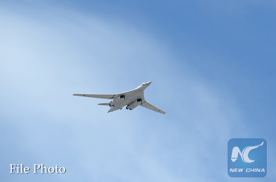 A Tupolev Tu-160 strategic bomber is seen during the military parade marking the 70th anniversary of the victory in the Great Patriotic War, in Moscow, Russia, May 9, 2015. (Xinhua/Jia Yuchen)