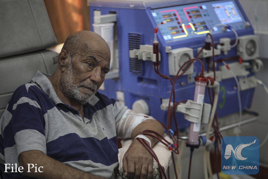 A Palestinian patient receives treatment at the department of kidney dialyses at a hospital, during the worsening crisis of power outages, in the Gaza City, on Aug. 14, 2017. (Xinhua File photo)