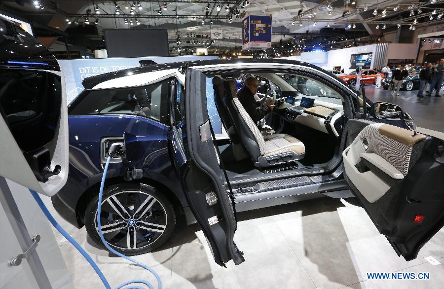 Photo taken on Jan. 18, 2018 shows a BMW i3 electric car during the 96th European Motor Show in Brussels, Belgium. (Xinhua/Ye Pingfan)