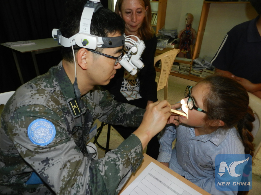 MARJEYOUN, Lebanon, Oct. 17 (Xinhua) -- A Chinese medical team working with the Chinese peace-keeping troops at the United Nations Interim Force in Lebanon (UNIFIL) on Wednesday conducted medical examinations for students of an Orthodox school in southern Lebanon.