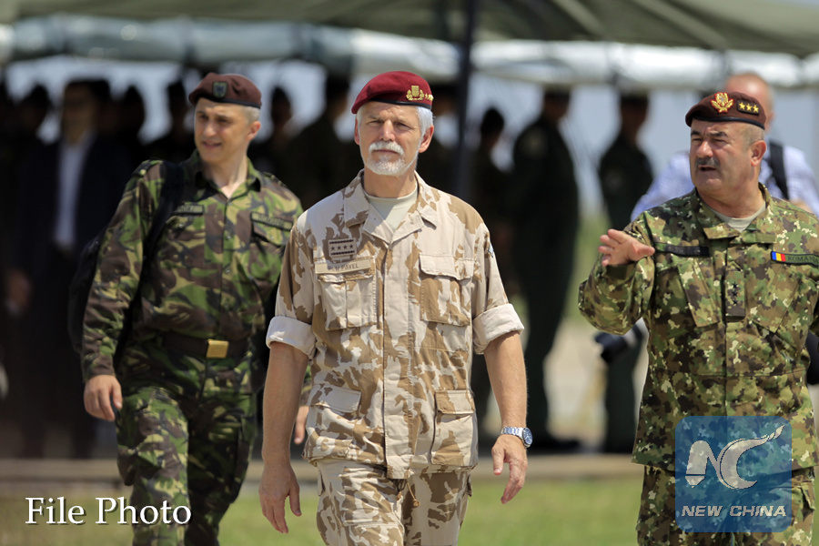 Chairman of the NATO Military Committee Petr Pavel (C) visits the Mihail Kogalnieanu military airbase, 250 km east of Bucharest, Romania, July 13, 2017. (Xinhua/Cristian Cristel)