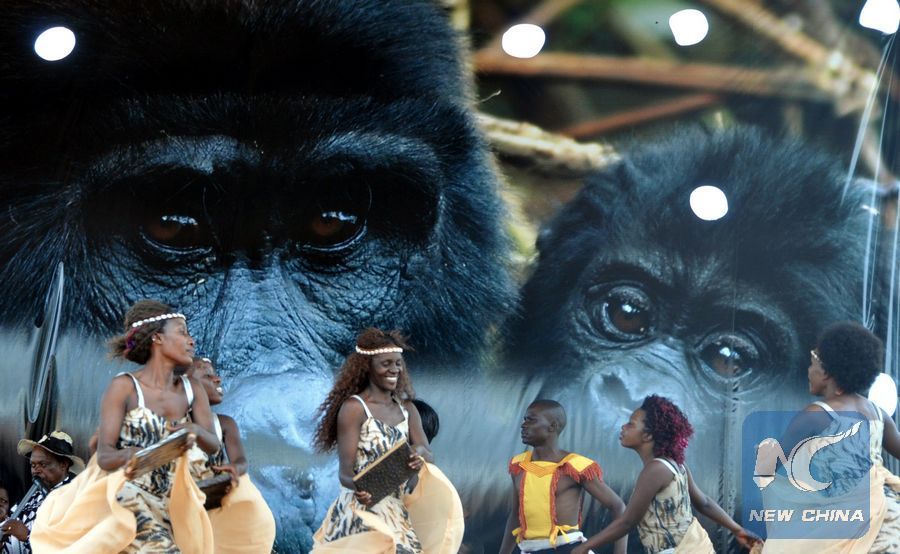File photo shows that local artists perform during the national celebration of mountain gorilla conservation in Kampala, capital of Uganda, Sept. 26, 2009. (Xinhua/Chen Jing)