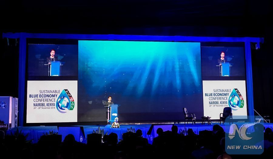 Xu Jinghu, Special Representative of the Chinese Government on African affairs, delivers a speech at the Sustainable Blue Economy Conference in Nairobi, Kenya, on Nov. 26, 2018. (Xinhua/Yang Zhen)