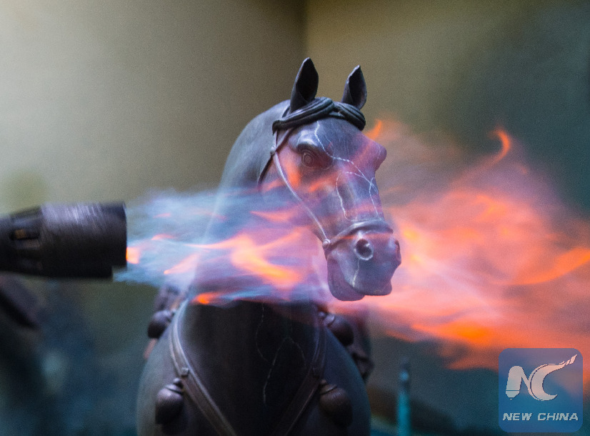 A craftsman makes a copper horse at a factory of Tongshifu in Jiande City, east China's Zhejiang Province, Jan. 2, 2019. A traditional sanitary ware production company, Tong Shifu, meaning Copper Master, has converted itself into an enterprise that designs and makes copper artworks in collaboration with museum, cartoon firm and artist's studio. (Xinhua/Weng Xinyang) XINHUA PHOTOS OF THE DAY
