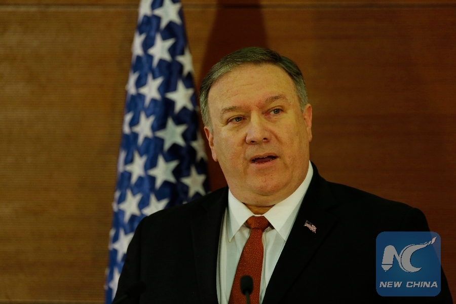 CAIRO, Jan. 10 (Xinhua) -- U.S. Secretary of State Mike Pompeo said on Thursday that the United States will "use diplomacy" and work with partners to curb Iran's influence in the Middle East region.