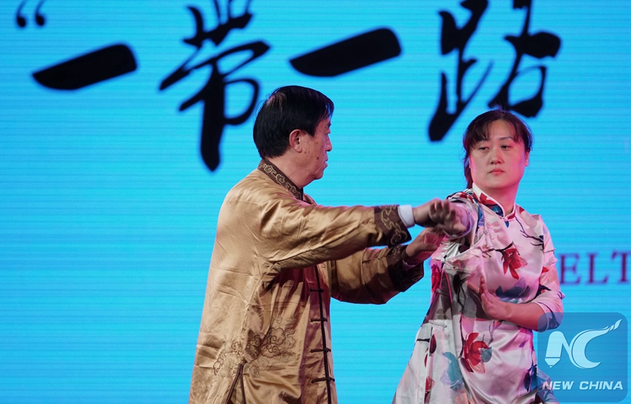 They made a demonstration show of both Chen-style and Yang-style Tai Chi -- two of the five traditional family styles of the 400-year-old martial arts, which drew a round of thunderous applause for their perfect performance of the Chinese Kung Fu.
