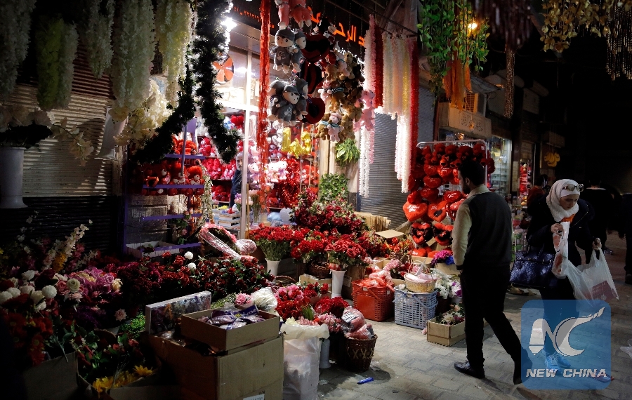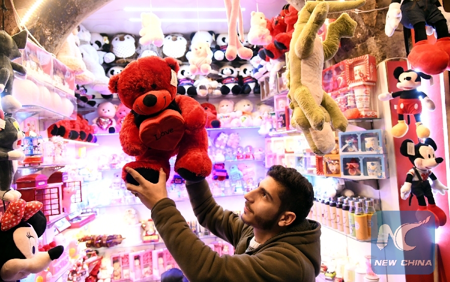 DAMASCUS, Feb. 14 (Xinhua) -- Teddybears, roses and heart-shaped pillows are losing their glamor as the traditional Valentine's Day gifts this year in Damascus, capital of Syria, as the eight-year war and resulting economic hardships have stripped the majority of the people of the surprise of the happy day.