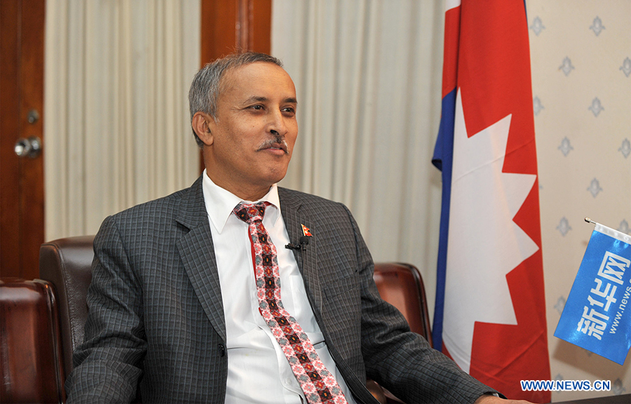 Nepali Ambassador to China Leela Mani Paudyal takes an exclusive interview with Xinhuanet in Beijing, capital of China, February 26, 2019. (Xinhuanet/Xu Xin)