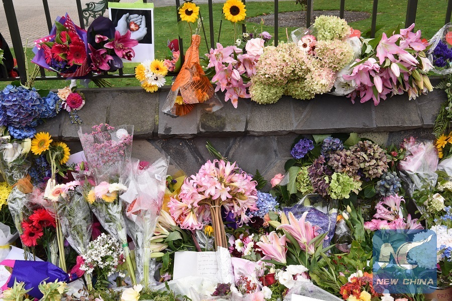 People lay flowers to mourn the victims of the attacks on two mosques in Christchurch, New Zealand, on March 16, 2019. (Xinhua/Guo Lei)