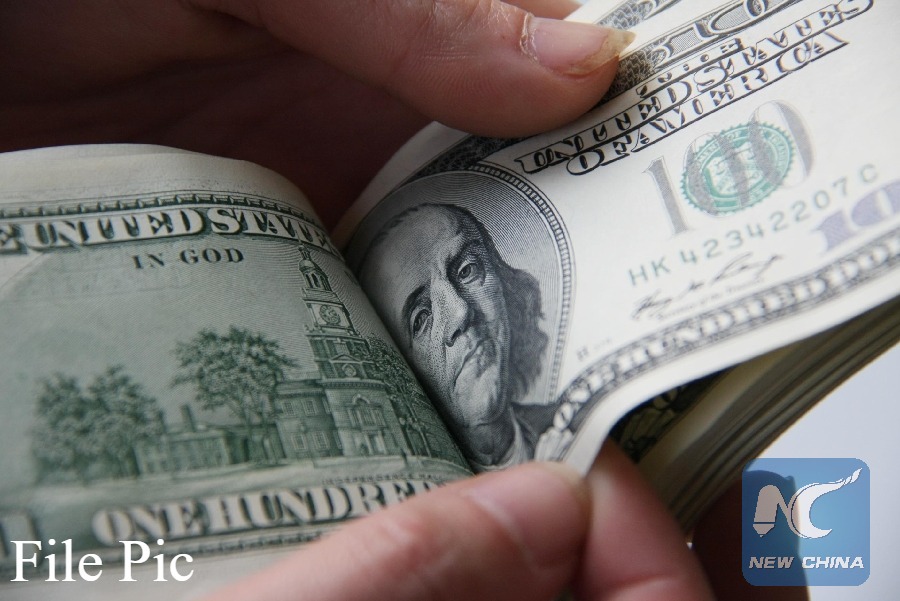 A citizen counts U.S. dollar notes in Nantong, east China's Jiangsu Province, on Feb. 21, 2011. (Xinhua File photo)
