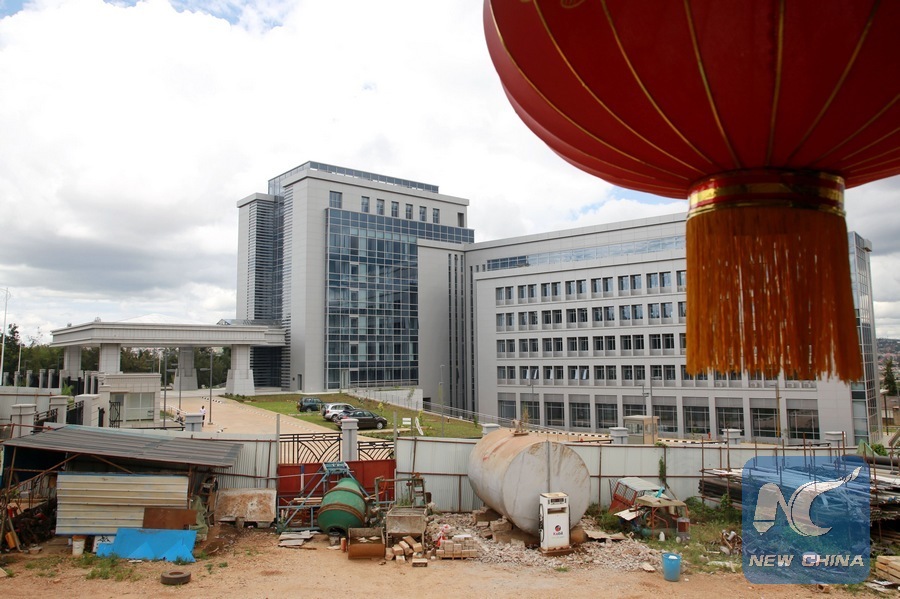Photo taken on May 8, 2019 shows the exterior of the Administrative Office Complex of Rwanda in Kigali, capital city of Rwanda. Implemented by China's Top International Engineering Corporation, it is the largest China-aid project in Rwanda by far. (Xinhua/Lyu Tianran)