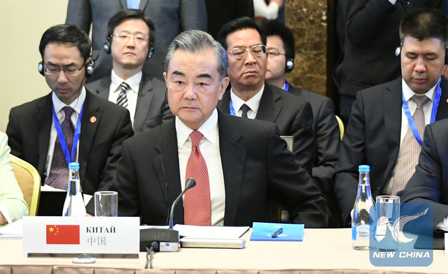 Chinese State Councilor and Foreign Minister Wang Yi attends the meeting of the Shanghai Cooperation Organization Council of Foreign Ministers in Bishkek, Kyrgyzstan, May 22, 2019. (Xinhua/Li Yong)