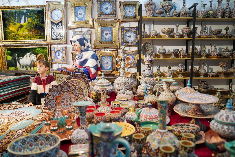 Photo taken on June 17, 2019 shows craft works at the Iranian booth during the Sixth China-Russia Expo in Harbin, northeast China's Heilongjiang Province. (Xinhua)