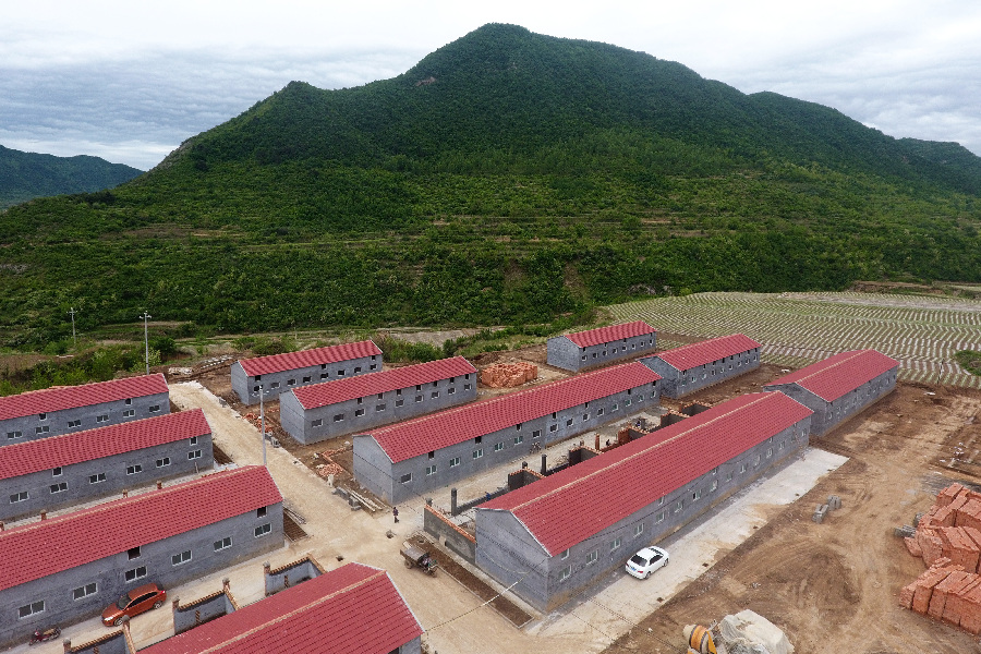 Aerial photo taken on May 24, 2018 shows the new houses at the relocation site in Shuzhang Township of Huguan County, north China's Shanxi Province. (Xinhua)