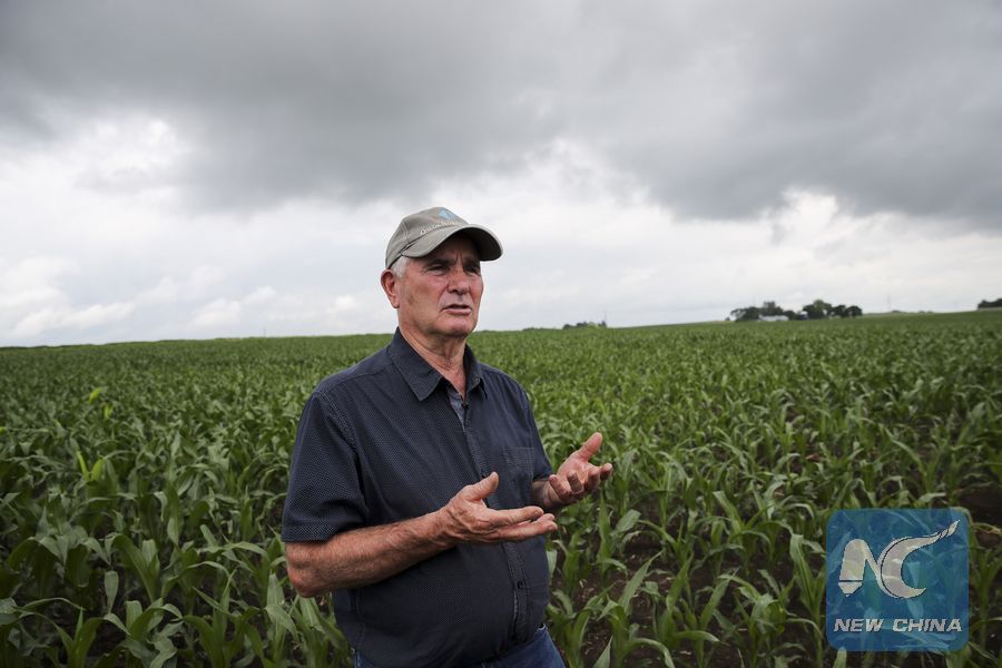 Farm owner Bill Pellett speaks during an interview at his corn field in his family farm in Atlantic, a small city in the Midwestern state of Iowa, the United States, June 18, 2019. From cattle feeders in Iowa to pecan growers in Georgia, U.S. farmers are worrying about further damage caused by market uncertainties as trade tensions between the world's two largest economies drag on. (Xinhua/Wang Ying)