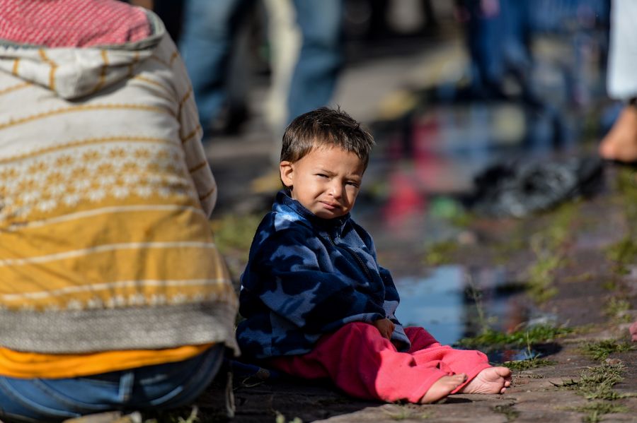 A child sits in a temporary transit center for migrants from Central America in Mexico City, capital of Mexico, Nov. 5, 2018. (Xinhua/Xin Yuewei)