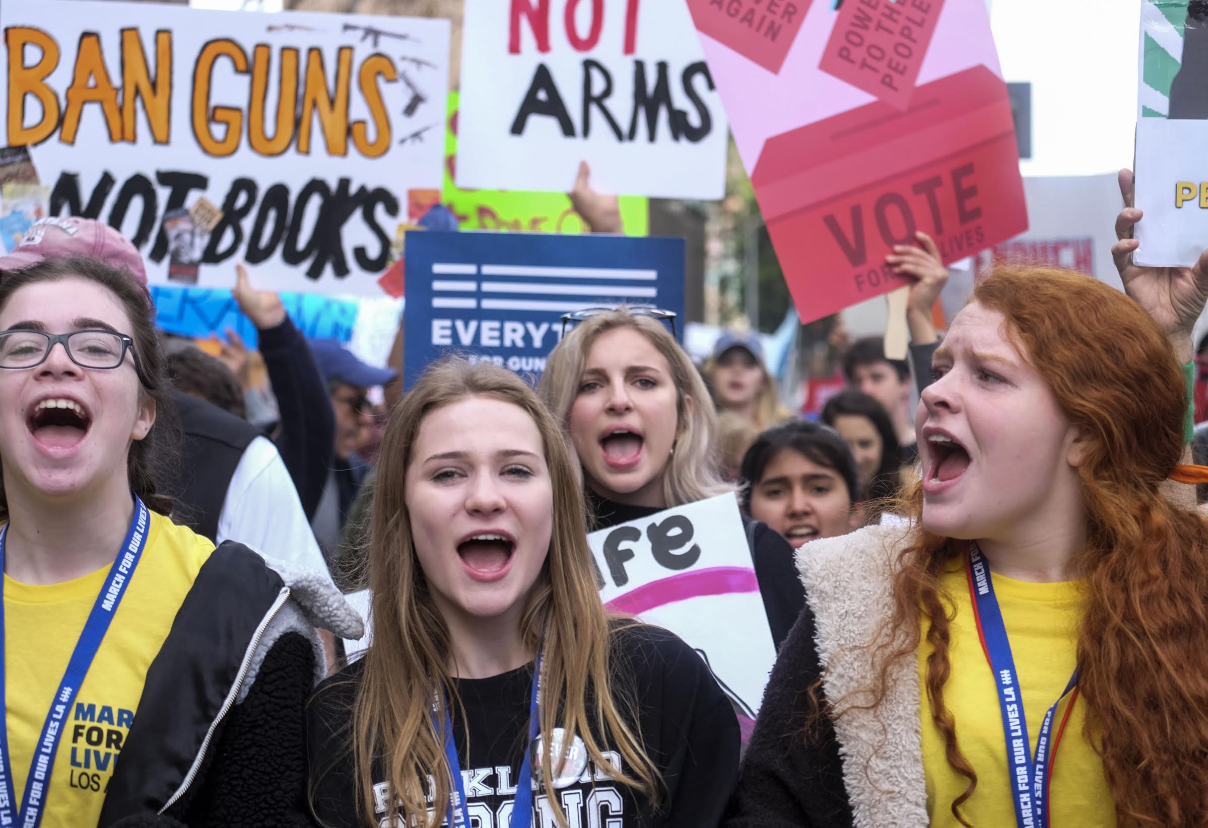People take part in a nationwide demonstration "March for Our Lives" to advocate for stronger gun control laws in Los Angeles, the United States, on March 24, 2018. (Xinhua/Zhao Hanrong)
