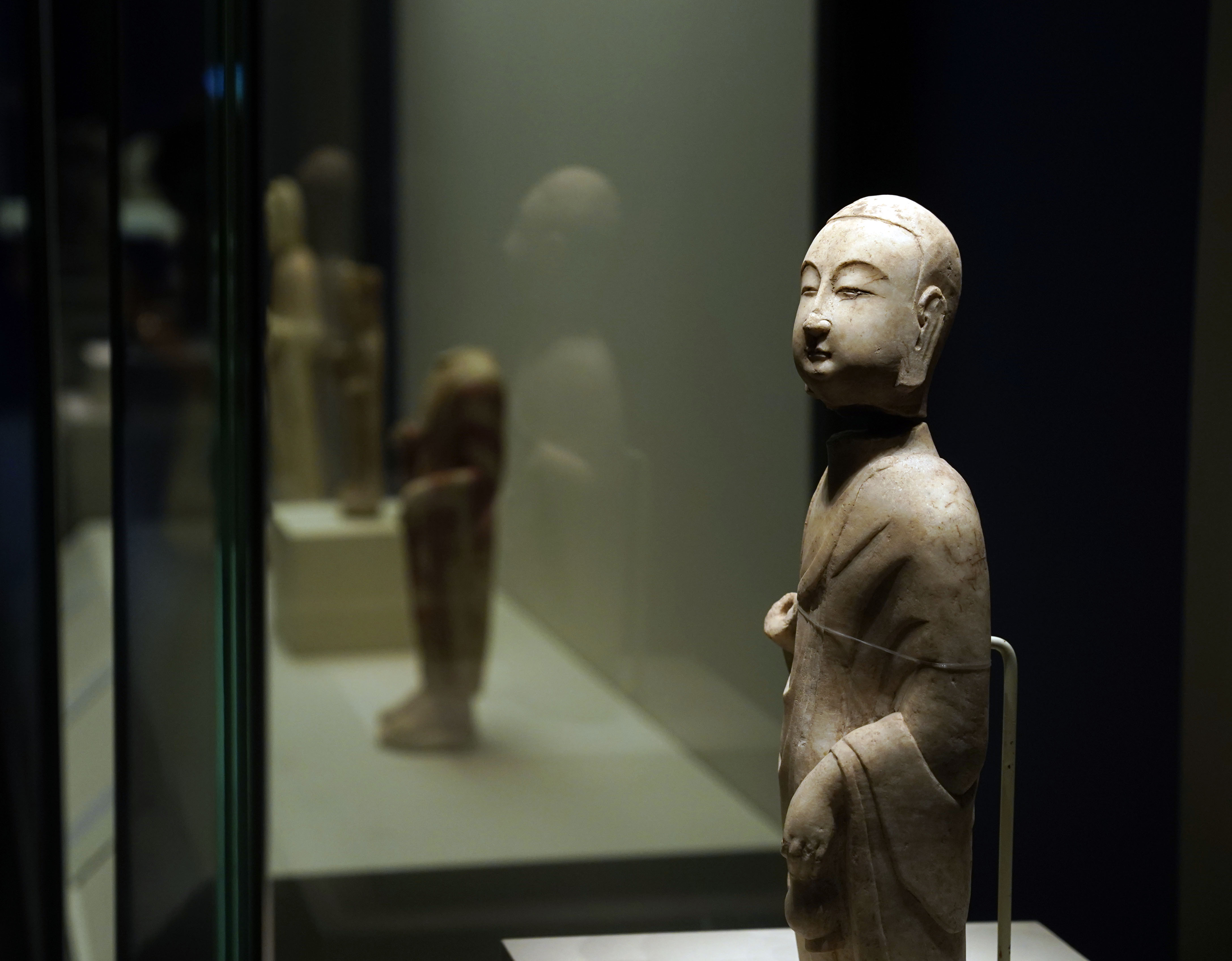The exhibition mainly displays Buddha statues unearthed in 2012 from Yecheng, a historic site in Hebei Province's Linzhang County.