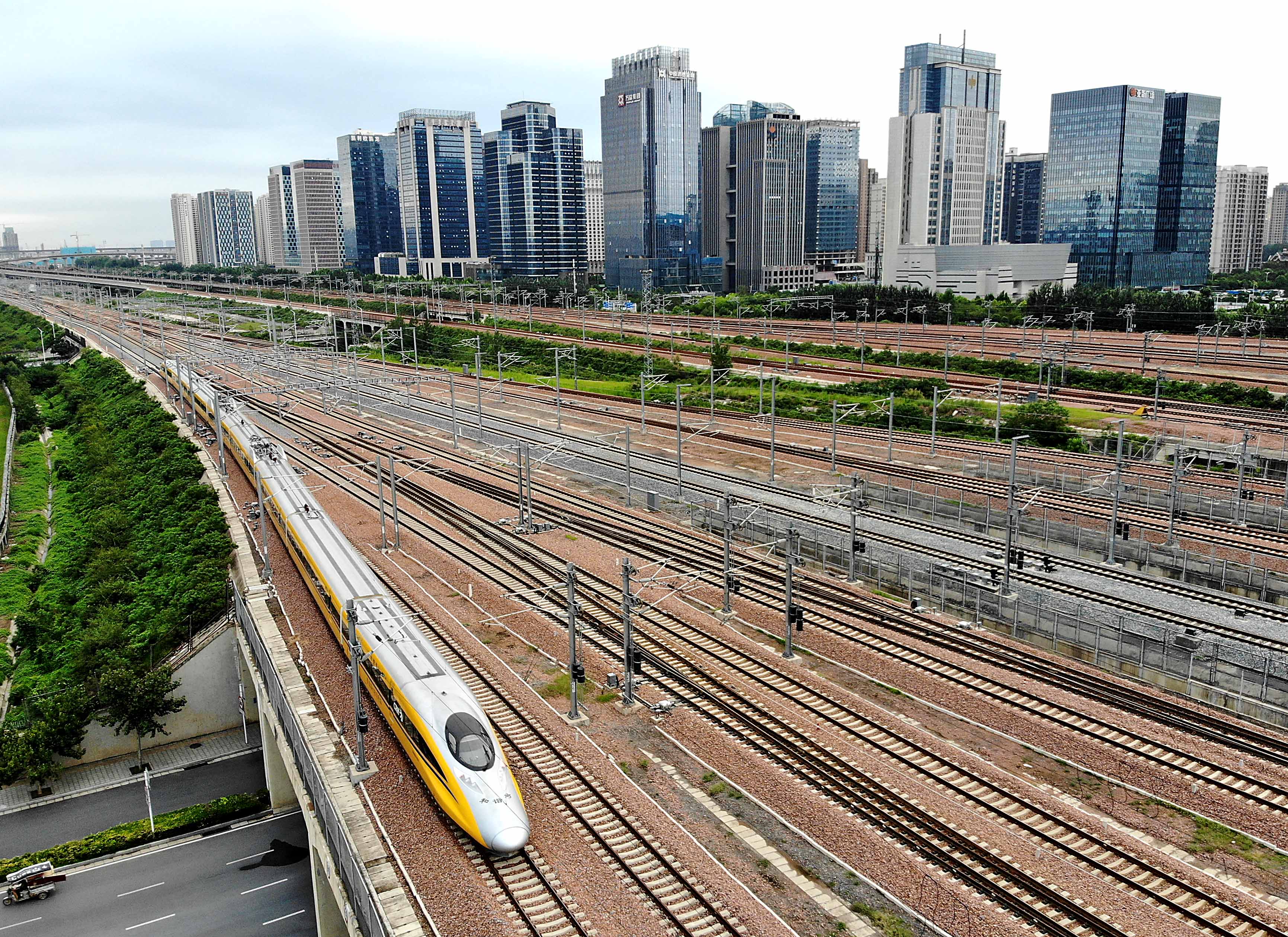 A comprehensive inspection train runs on the Zhengzhou-Wanzhou railway line in Zhengzhou, central China's Henan Province. (Xinhua/Li An)